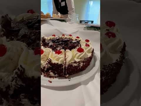 Unsere Gäste genossen feine Spezialitäten wie Schwarzwäldertorte und weitere süsse Köstlichkeiten, die serviert wurden. Dazu wurden verschiedene Getränke angeboten, darunter klassischer Wiener Kaffee mit Sahne.